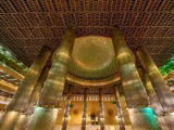 東南アジアで最大規模のイスラム教礼拝堂。故スカルノ初代大統領時代の1961年に建設が始まり、完成したのは1978年。実に17年の歳月をかけて作られた巨大建築物だ。イスラム信者が礼拝する2階(IF)には立ち入れないが、それ以外は自由に見て回れる。毎週金曜には、無数のイスラム教信者が礼拝と導師の説教を聞きに集まり、信仰心のあつさを肌で感じられる。 |