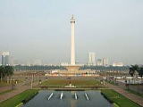 高さ132mの独立記念塔は、モナスと呼ばれる首都のシンボル。頂上部には50㎏の純金で燃える炎をかたどり、ジャカルタ中心部にある約1㎞四方のムルデカ広場の真ん中に立っている。台座内にある独立広間の中央壁面では正時毎に数分ほど大扉が開き愛国歌とともにスカルノ初代大統領が署名した独立宣言文が現れ、それを読み上げる肉声テープが流れる。 |