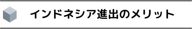 低価格・低賃金で、低コストを実現します。 また、新規市場への進出には土地の購入や工場の建設など大規模な投資が必要ですが、インドネシアは日本に比べて投資額がはるかに少ないため、大規模な市場と相まって大きな利益を得ることができます。